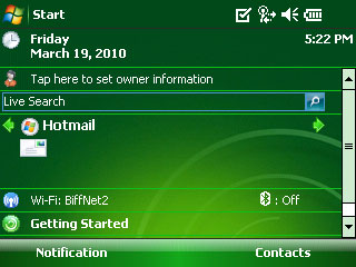 The Windows Mobile 6.1 platform used by the TK6000 may no longer be the latest and flashiest, but it remains a user-friendly operating environment familiar to millions of users. The landscape 320 x 240 pixel format makes for a different aspect ratio and so things look a bit different, but many will actually prefer the wider screen format. Below are some of the major screens you see when using the TK6000.