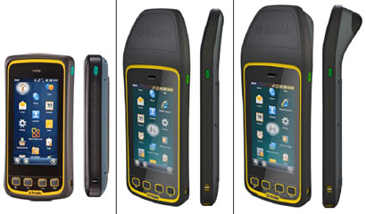 Additional variables are the 800MHz or 1GHz processor, Windows Embedded Handheld 6.5 or Android, and yellow (IP65) or gray (IP68) sealing. That's potentially a very large number of permutations, and Trimble assures us that, with the exception of the G models (enhanced GPS) that require the faster processor, all such possible permutations are available.